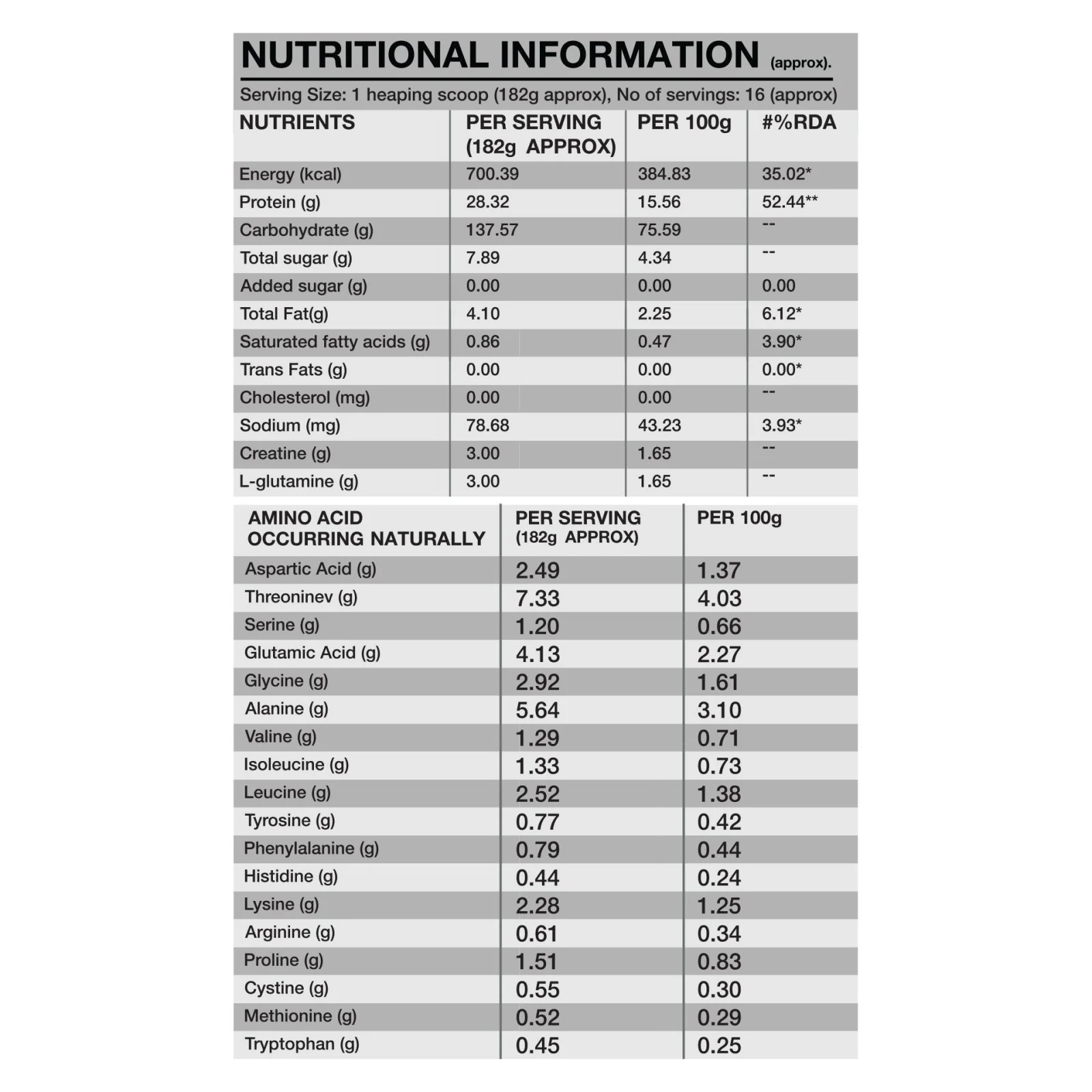 L-GLUTAMINE: Helps to minimize the breakdown of muscle and improve protein metabolism and helps in recovery.