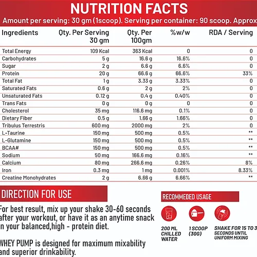 Sportplus Nutrition Whey Pump 6lbs is the clean & Pure isolate Protein powder in the Market 20g Protein, 2g creatine, 1500 bcaa 90 Serving for Men & Women